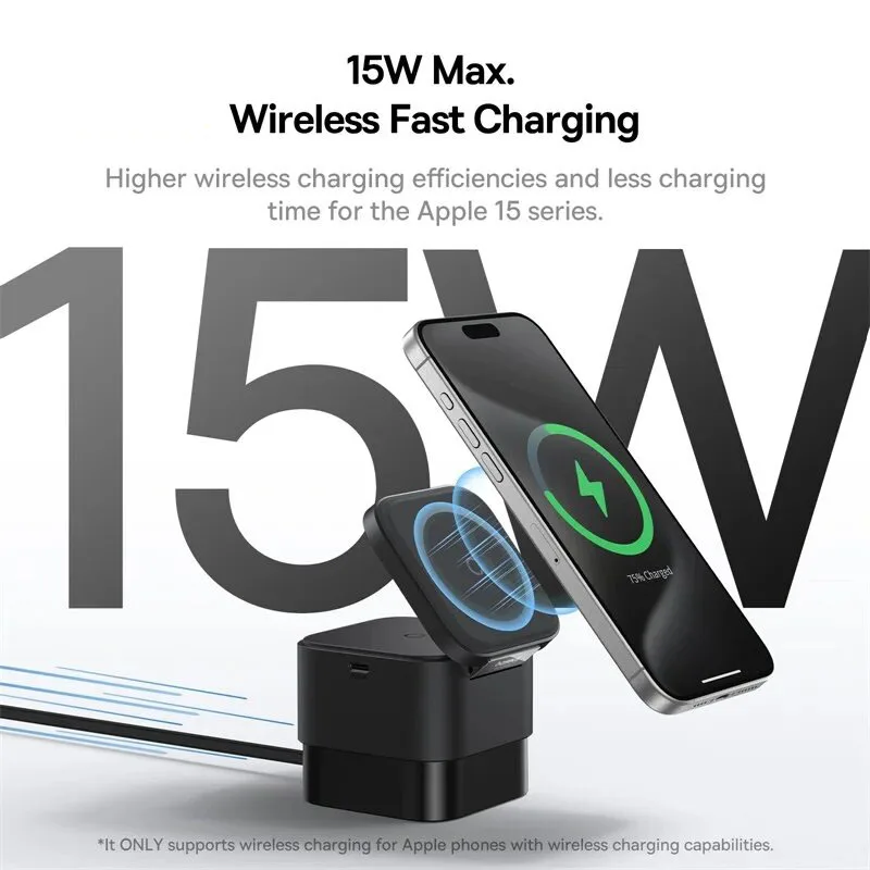 Ask about 25W 3-in-1 Magnetic Wireless Charging Station | 360° Rotatable Stand for iPhone, AirPods & Apple Watch | Foldable Fast Charger with Retractable Cable
