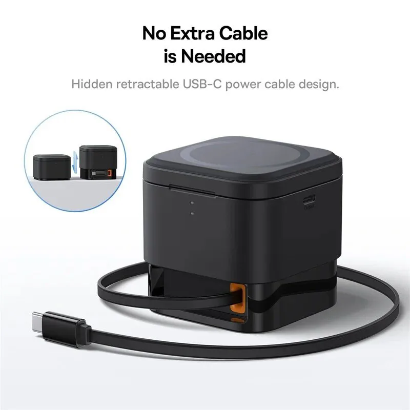 Compact & Travel-Ready: The foldable design and built-in retractable power cable make it incredibly portable. Tuck it into your bag for a neat charging solution anywhere you go.